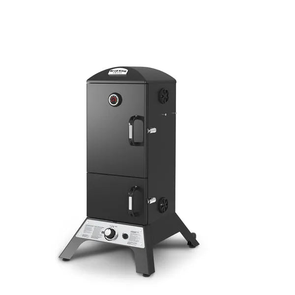 Cliquez pour nous appeler - (819) 732-5375Le fumoir à gaz vertical dispose d'un espace de cuisson total de 770 po², de quatre grilles de cuisson réglables en acier inoxydable, d'un système d'allumage électronique, d'un système d'amortisseur réglable en aluminium moulé Roto-Draft et de deux portes en acier robuste avec un système de verrouillage de qualité supérieure.