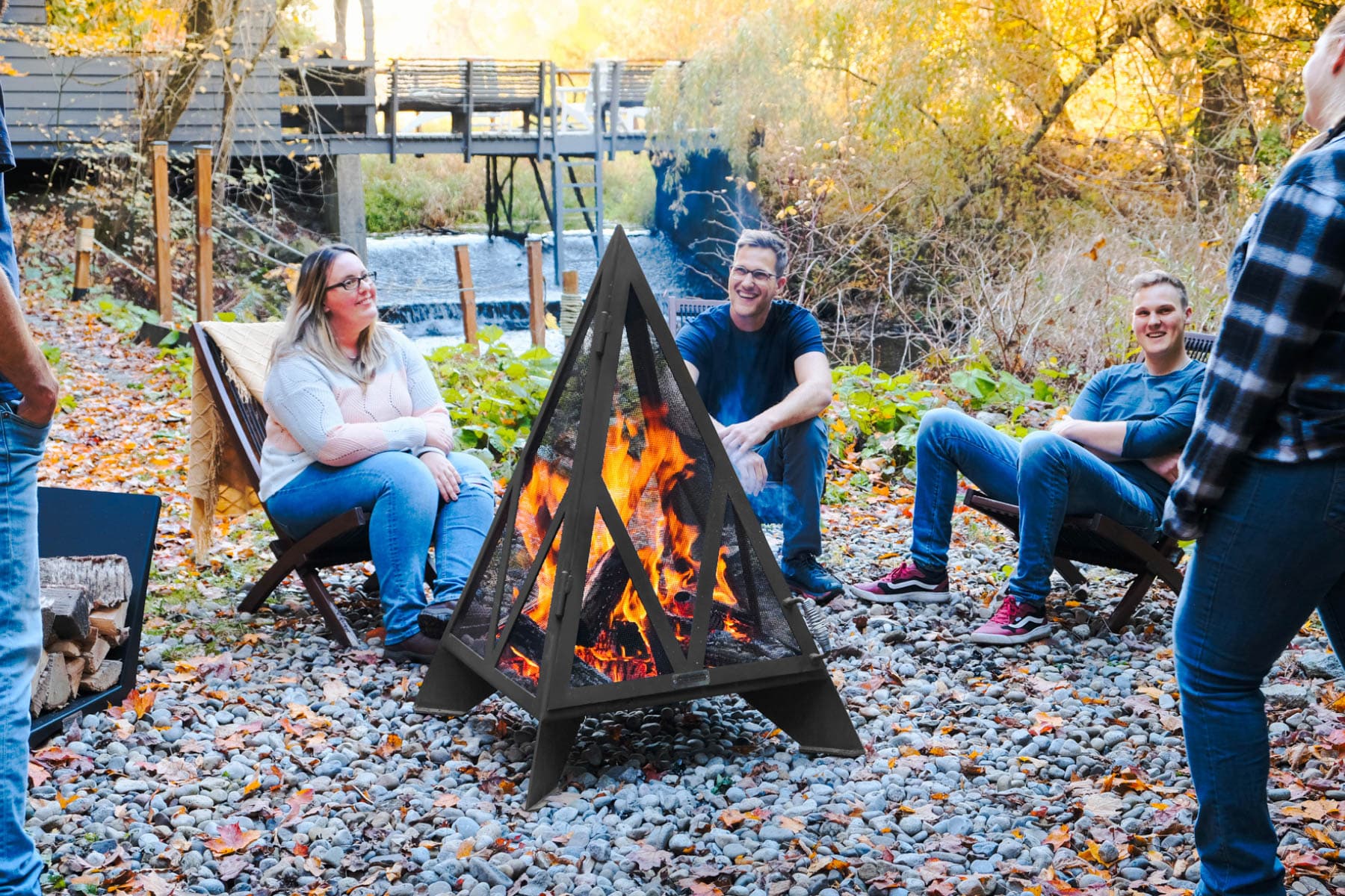 Le design unique et l'appel artistique du Pyramid de 4 pi en fait l'un de nos foyers extérieurs les plus populaires. Il est équipé d'un écran en treillis d'acier inoxydable qui ne limite pas votre vue sur les flammes et vous donne confiance en sachant que votre feu est entièrement sécurisé. La façade de la cheminée est ouverte avec une poignée de ressort en acier inoxydable afin que vous puissiez ajouter du bois en toute sécurité. Le sol surélevé du Pyramid s'incline vers un trou de drainage central de sorte qu'après une tempête de pluie, votre unité est prête à l'emploi. Le Pyramid de 4 pi est un foyer extérieur beau et fonctionnel adapté à tout espace de vie extérieur de cour arrière ou de chalet!