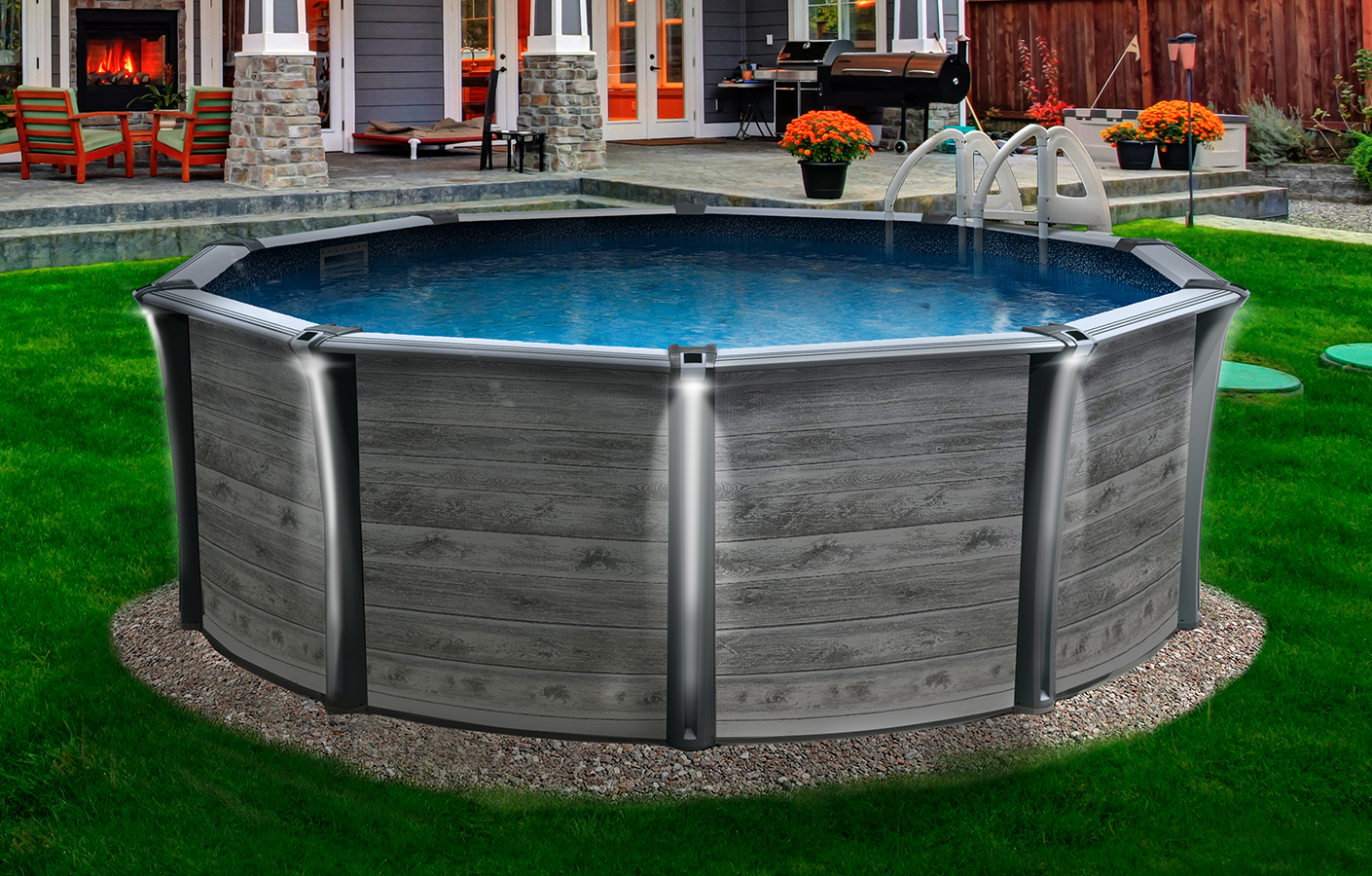Piscine hors terre | Alizé | 12' de la gamme Maître Piscinier. Cette piscine a une structure en résine du modèle Alizé. Choisissez la couleur des murs de la piscine ainsi que la couleur de la toile de la piscine.