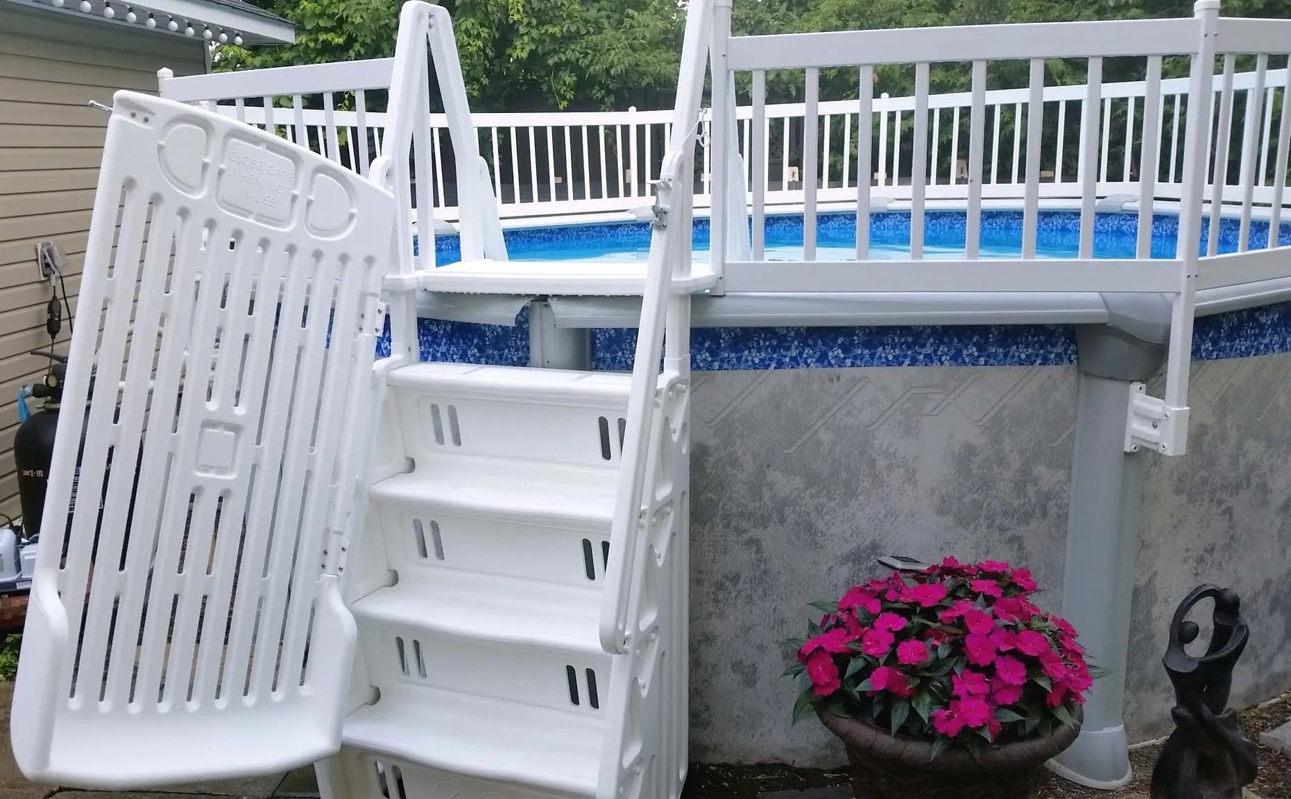 Cliquez pour nous appeler - (819) 732-5375Le modèle GE est un système d'entrée à double marche pour monter et descendre facilement. votre piscine. Il dispose d'un portail à fermeture automatique, à verrouillage automatique et verrouillable pour les deux sécurité et pour répondre aux exigences du code. Il est réglable de 48″ à 56″ avec un Dégagement du rail supérieur de 12″. Avec seulement une empreinte de 22 pouces, cette échelle permet utilisation maximale de votre piscine. Disponible en blanc et taupe.